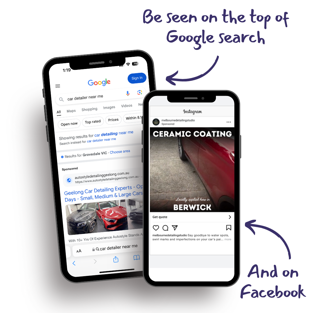 This is the ultimate advertising package for any serious auto detailer looking to grow their business (or those just starting!). We've bundled all our marketing services into one. This includes setting up and running your ads on both Google Ads & Meta ads to get you more leads (typically 50-100 leads per month). Creating a high-converting landing page that will impress your local audience and drive more sales (this can be used as a one-page website if you don't already have one!). Plus you get access to your own HighLevel CRM account that we have "Pimped Out" to have all of the powerful automation your business needs to grow! These include SMS campaigns, email campaigns, appointment reminders, the works!